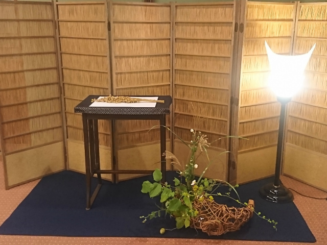 • 里芋などの収穫物: 中秋の名月は別名「芋名月」とも呼ばれ、里芋などの秋の収穫物を供えて豊作を感謝しました。